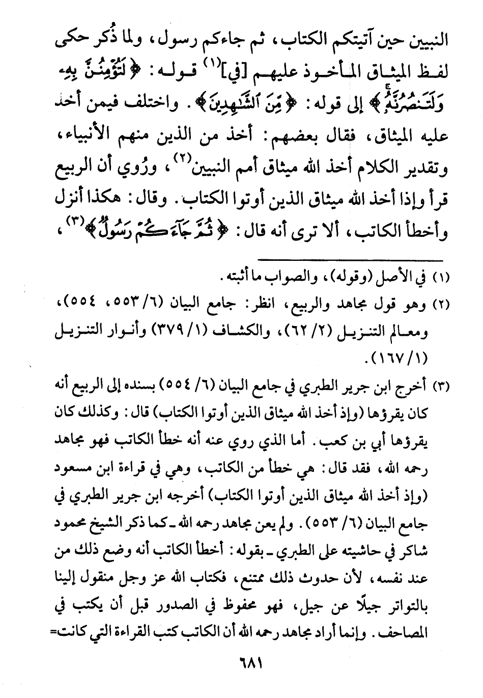 ورُوي أن الربيع قرأ "وإذا أخذ الله ميثاق الذين أوتوا الكتاب.