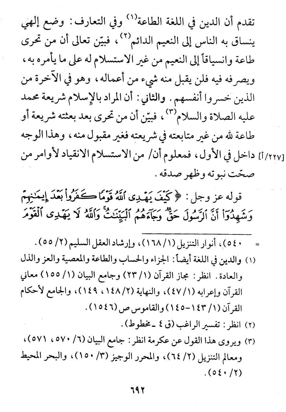والثاني: أن المراد بالإِسلام شريعة محمد عليه الصلاة والمسلام، فبيّن أن من تحرى بعد بعثته شريعة أو طاعة لله من غير متابعته في شريعته فغير مقبول منه، وهذا الوجه داخل في الأول، فمعلوم أن من الاستسلام الانقياد لأوامر من