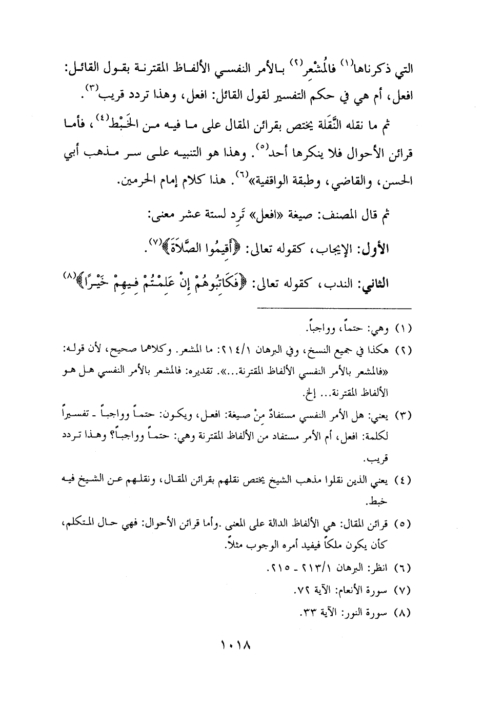 (¬٣) يعني: هل الأمر النفسي مستفادٌ مِنْ صيغة: افعل، ويكون: حتمًا وواجبًا - تفسيرًا لكلمة: افعل، أم الأمر مستفاد من الألفاظ المقترنة وهي: حتمًا وواجبًا؟ وهذا تردد قريب.
