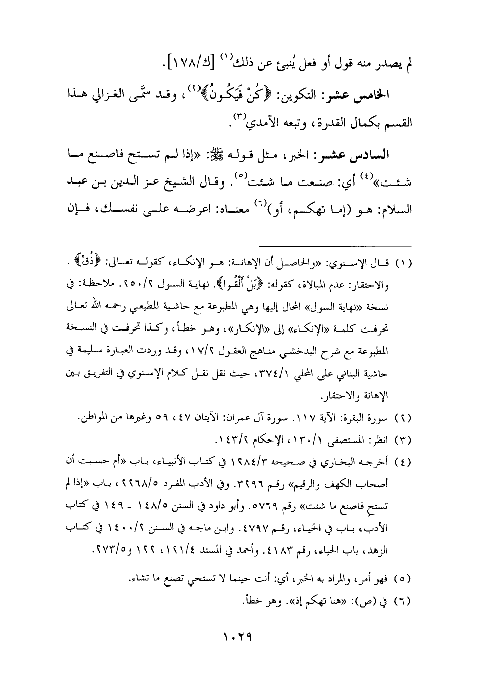 الخامس عشر: التكوين: {كُنْ فَيَكُونُ} (¬٢)، وقد سمَّى الغزالي هذا القسم بكمال القدرة، وتبعه الآمدي (¬٣).
