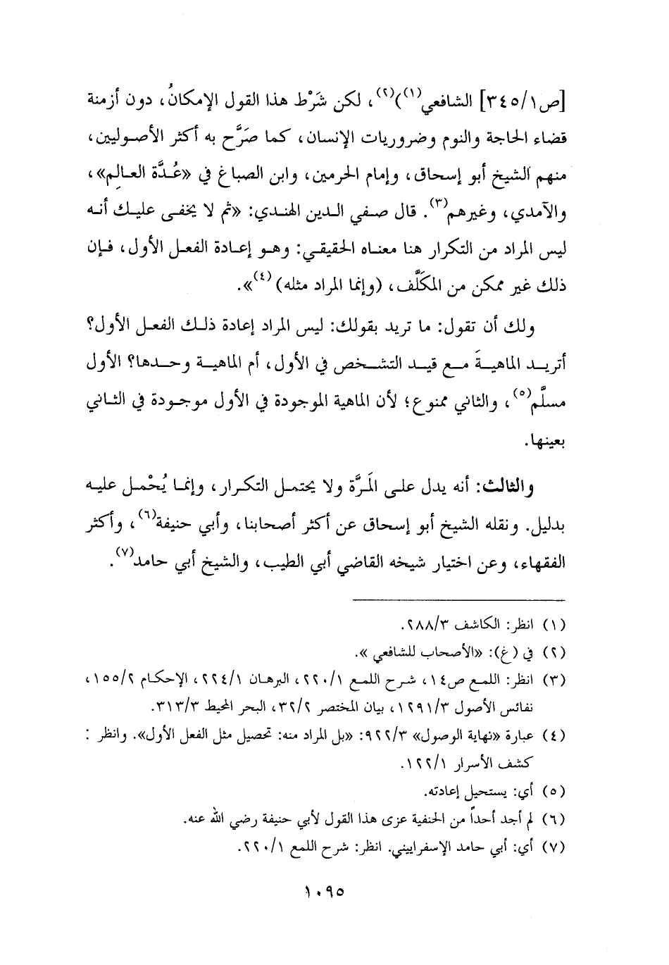 (¬٣) انظر: اللمع ص ١٤، شرح اللمع ١/ ٢٢٠، البرهان ١/ ٢٢٤، الإحكام ٢/ ١٥٥، نفائس الأصول ٣/ ١٢٩١، بيان المختصر ٢/ ٣٢، البحر المحيط ٣/ ٣١٣.