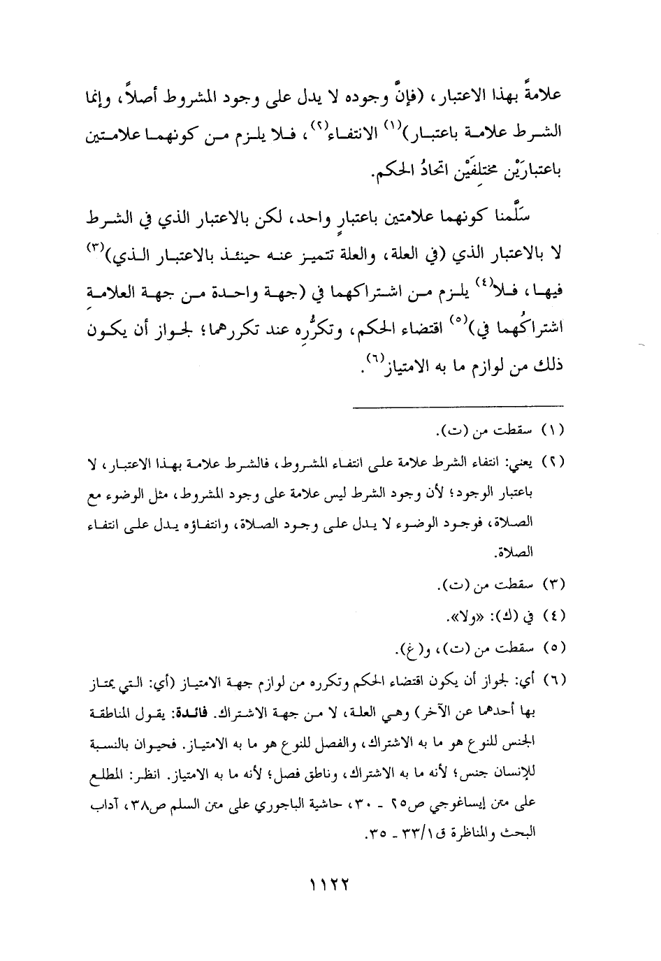(¬٦) أي: لجواز أن يكون اقتضاء الحكم وتكرره من لوازم جهة الامتياز (أي: التي يمتاز بها أحدهما عن الآخر) وهي العلة، لا من جهة الاشتراك. فائدة: يقول المناطقة الجنس للنوع هو ما به الاشتراك، والفصل للنوع هو ما به الامتياز. فحيوان بالنسبة للإنسان جنس؛ لأنه ما به الاشتراك، وناطق فصل؛ لأنه ما به الامتياز. انظر: المطلع على متن إيساغوجي ص ٢٥ - ٣٠، حاشية الباجوري على متن السلم ص ٣٨، آداب البحث والمناظرة ق ١/ ٣٣ - ٣٥.