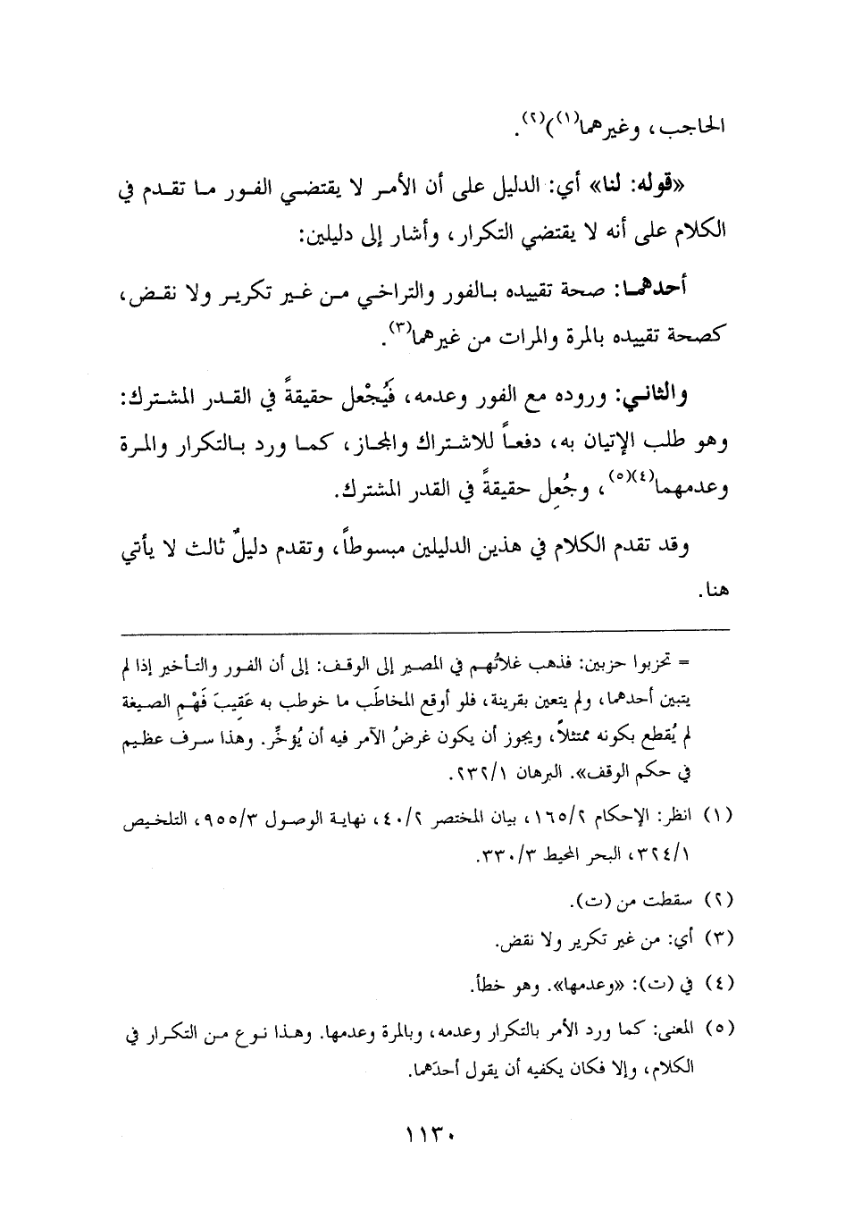 (¬١) انظر: الإحكام ٢/ ١٦٥، بيان المختصر ٢/ ٤٠، نهاية الوصول ٣/ ٩٥٥، التلخيص ١/ ٣٢٤، البحر المحيط ٣/ ٣٣٠.