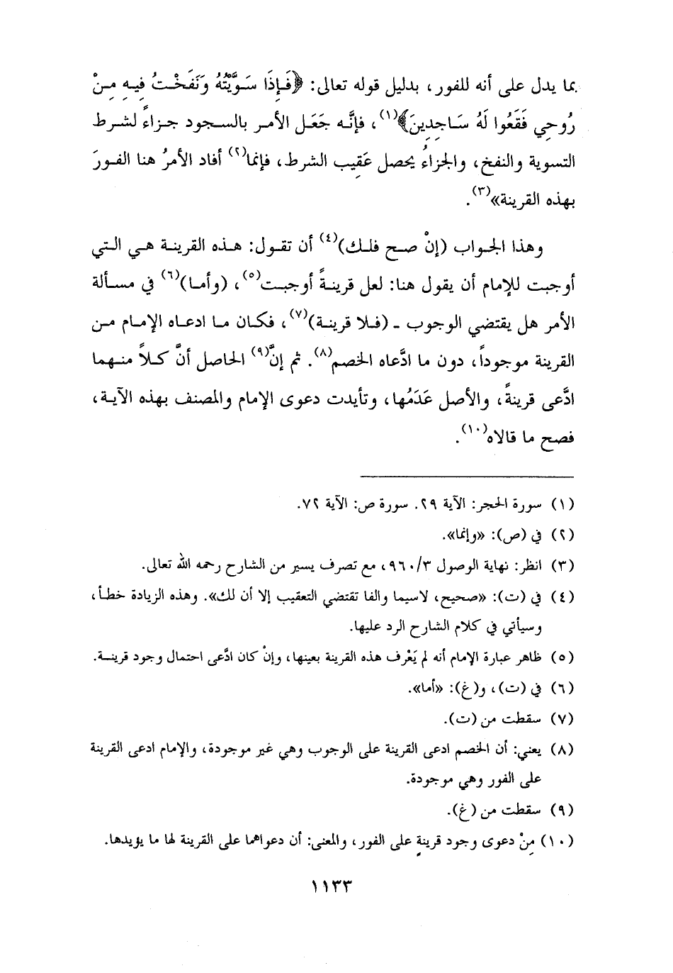 (¬٣) انظر: نهاية الوصول ٣/ ٩٦٠، مع تصرف يسير من الشارح رحمه الله تعالى.