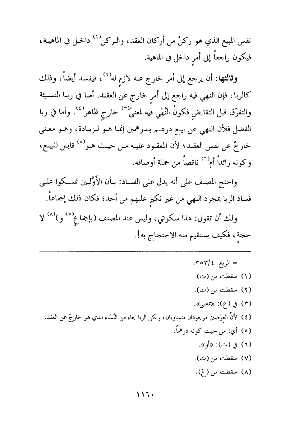 (¬٤) لأنَّ العِوَضين موجودان متساويان، ولكن الربا جاء من النَّسَاء الذي هو خارجٌ عن العقد.