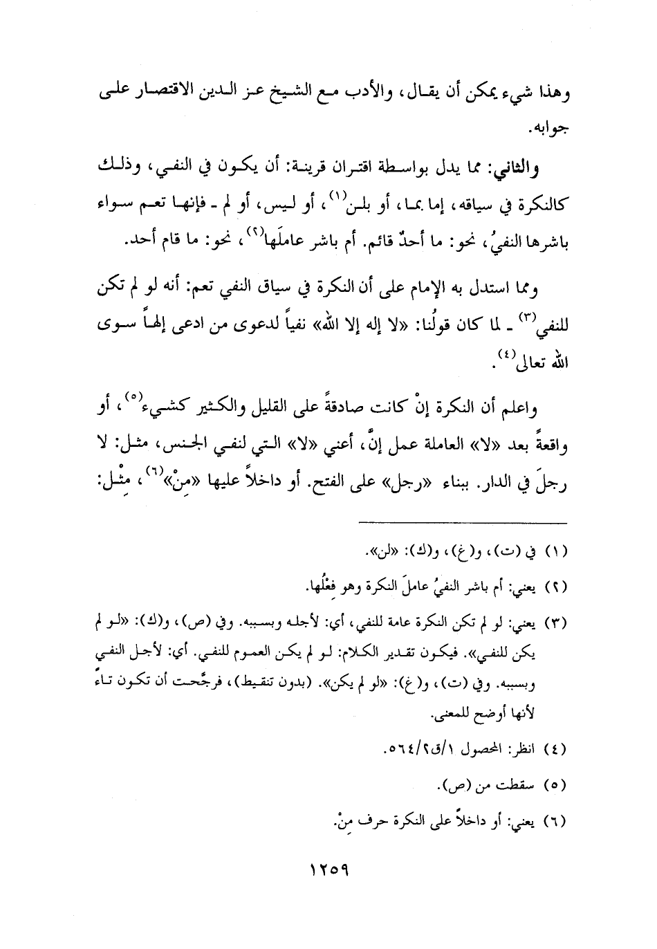 (¬٣) يعني: لو لم تكن النكرة عامة للنفي، أي: لأجله وبسببه. وفي (ص)، و (ك): "لو لم يكن للنفي". فيكون تقدير الكلام: لو لم يكن العموم للنفي. أي: لأجل النفي وبسببه. وفي (ت)، و (غ): "لو لم يكن". (بدون تنقيط)، فرجَّحت أن تكون تاءً لأنها أوضح للمعنى.