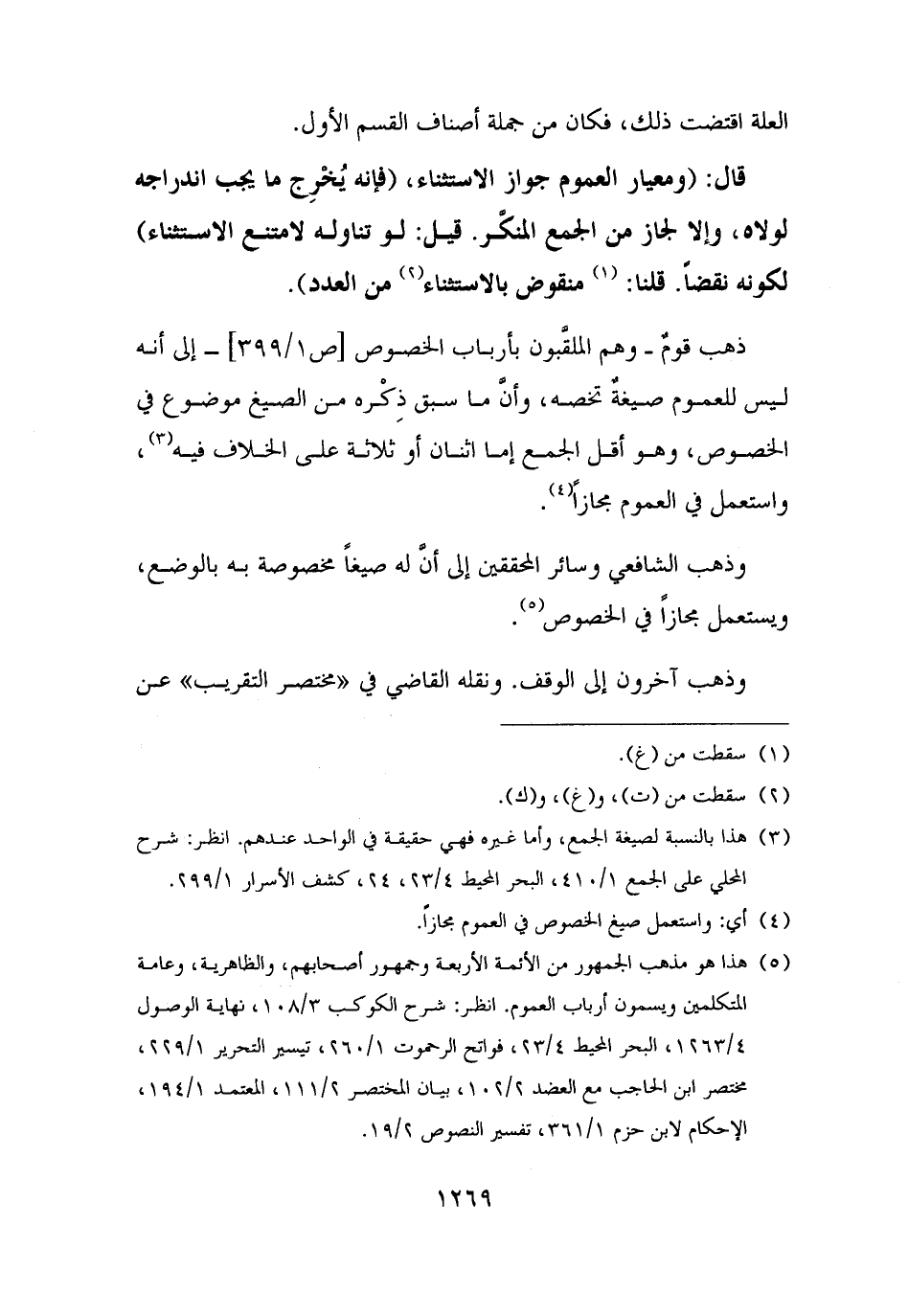 (¬٥) هذا هو مذهب الجمهور من الأئمة الأربعة وجمهور أصحابهم، والظاهرية، وعامة المتكلمين ويسمون أرباب العموم. انظر: شرح الكوكب ٣/ ١٠٨، نهاية الوصول ٤/ ١٢٦٣، البحر المحيط ٤/ ٢٣، فواتح الرحموت ١/ ٢٦٠، تيسير التحرير ١/ ٢٢٩، مختصر ابن الحاجب مع العضد ٢/ ١٠٢، بيان المختصر ٢/ ١١١، المعتمد ١/ ١٩٤، الإحكام لابن حزم ١/ ٣٦١، تفسير النصوص ٢/ ١٩.
