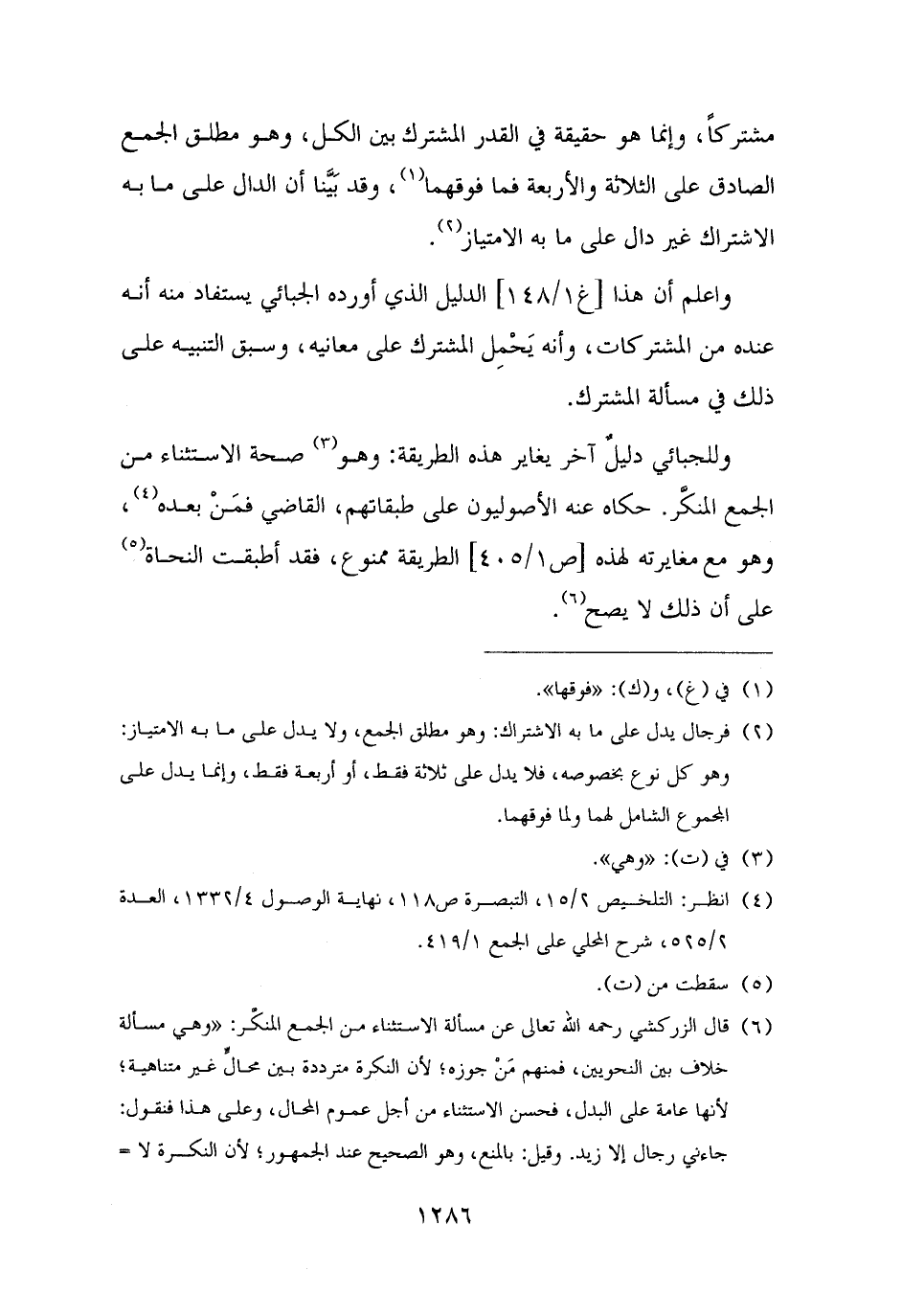 وللجبائي دليلٌ آخر يغاير هذه الطريقة: وهو (¬٣) صحة الاستثناء من الجمع المنكَّر. حكاه عنه الأصوليون على طبقاتهم، القاضي فمَنْ بعده (¬٤)، وهو مع مغايرته لهذه الطريقة ممنوع، فقد أطبقت النحاة (¬٥) على أن ذلك لا يصح (¬٦).