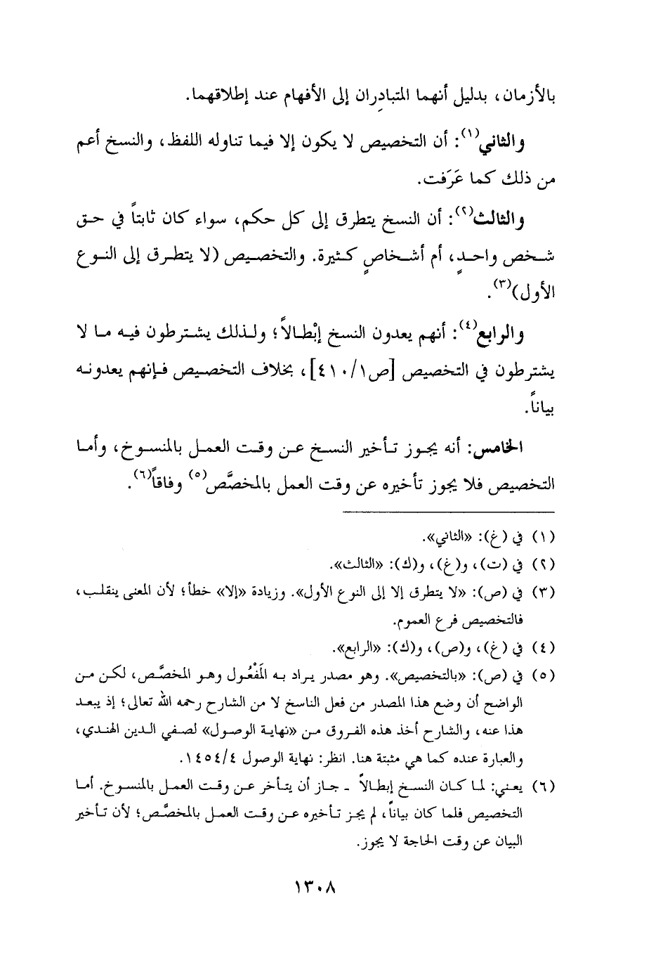 (¬٥) في (ص): "بالتخصيص". وهو مصدر يراد به المَفْعُول وهو المخصَّص، لكن من الواضح أن وضع هذا المصدر من فعل الناسخ لا من الشارح رحمه الله تعالى؛ إذ يبعد هذا عنه، والشارح أخذ هذه الفروق من "نهاية الوصول" لصفي الدين الهندي، والعبارة عنده كما هي مثبتة هنا. انظر: نهاية الوصول ٤/ ١٤٥٤.