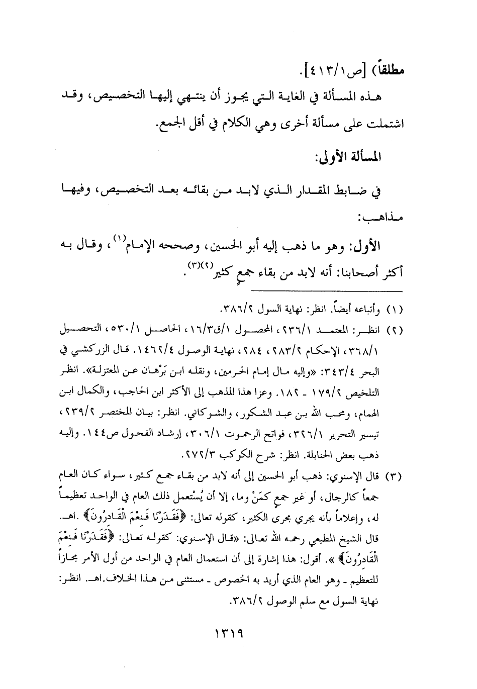 (¬١) وأتباعه أيضًا. انظر: نهاية السول ٢/ ٣٨٦.