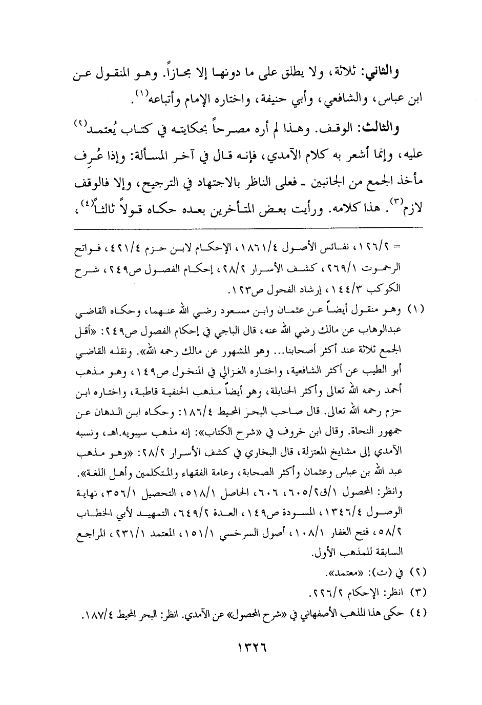 (¬٤) حكى هذا المذهب الأصفهاني في "شرح المحصول" عن الآمدي. انظر: البحر المحيط ٤/ ١٨٧.