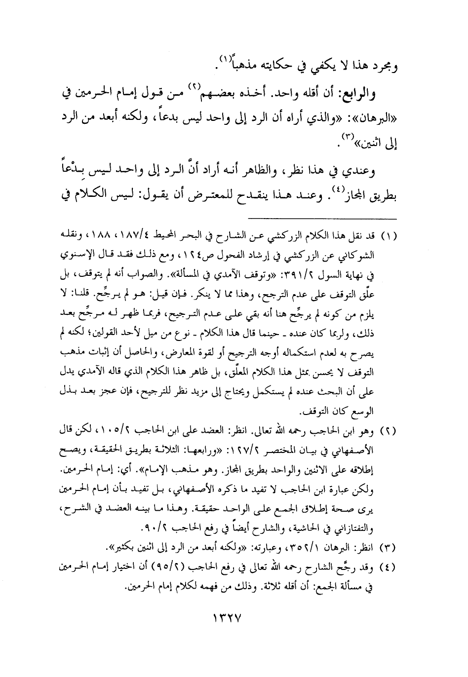 (¬٣) انظر: البرهان ١/ ٣٥٢، وعبارته: "ولكنه أبعد من الرد إلى اثنين بكثير".