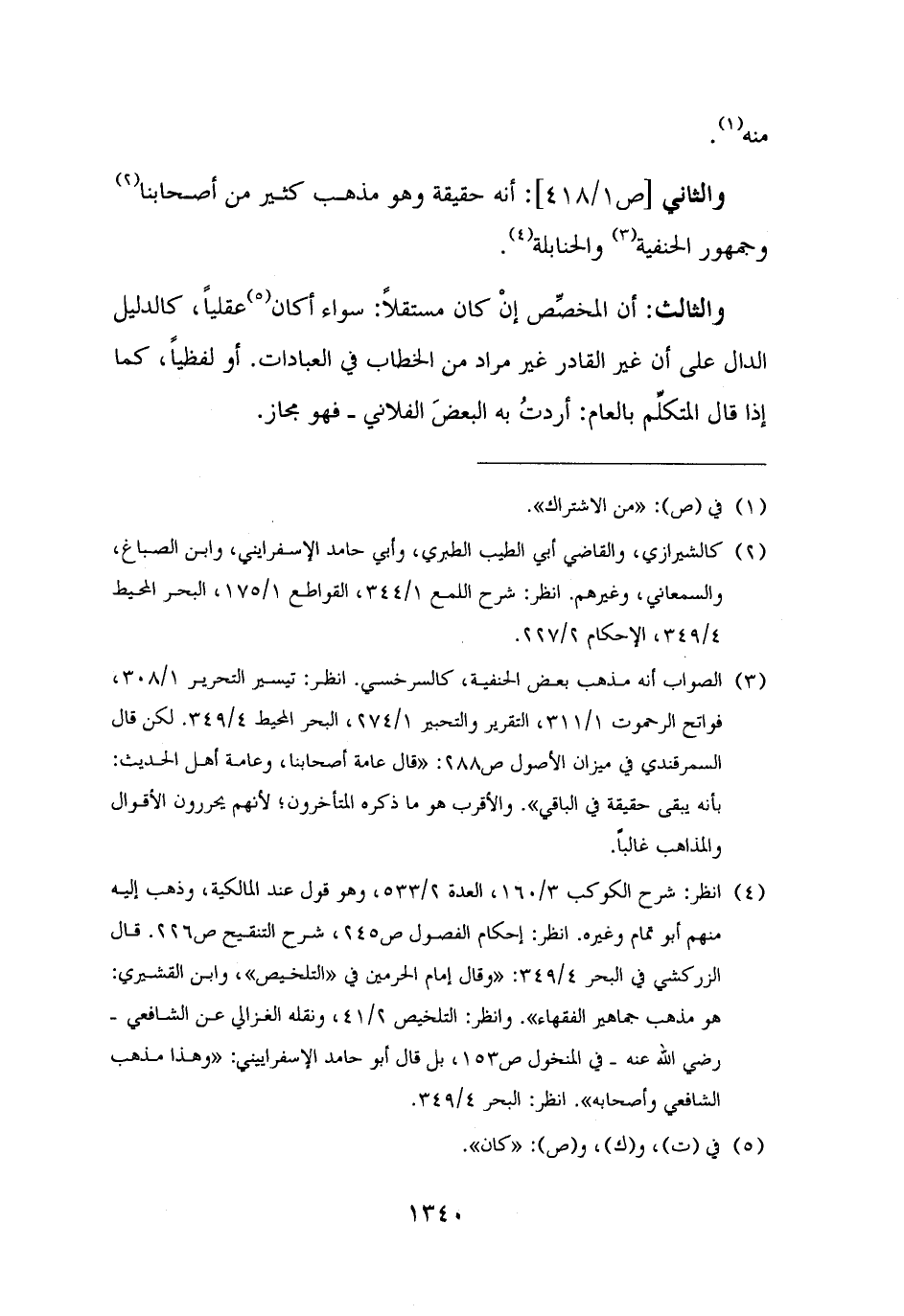(¬٢) كالشيرازي، والقاضي أبي الطيب الطبري، وأبي حامد الإسفرايني، وابن الصباغ، والسمعاني، وغيرهم. انظر: شرح اللمع ١/ ٣٤٤، القواطع ١/ ١٧٥، البحر المحيط ٤/ ٣٤٩، الإحكام ٢/ ٢٢٧.