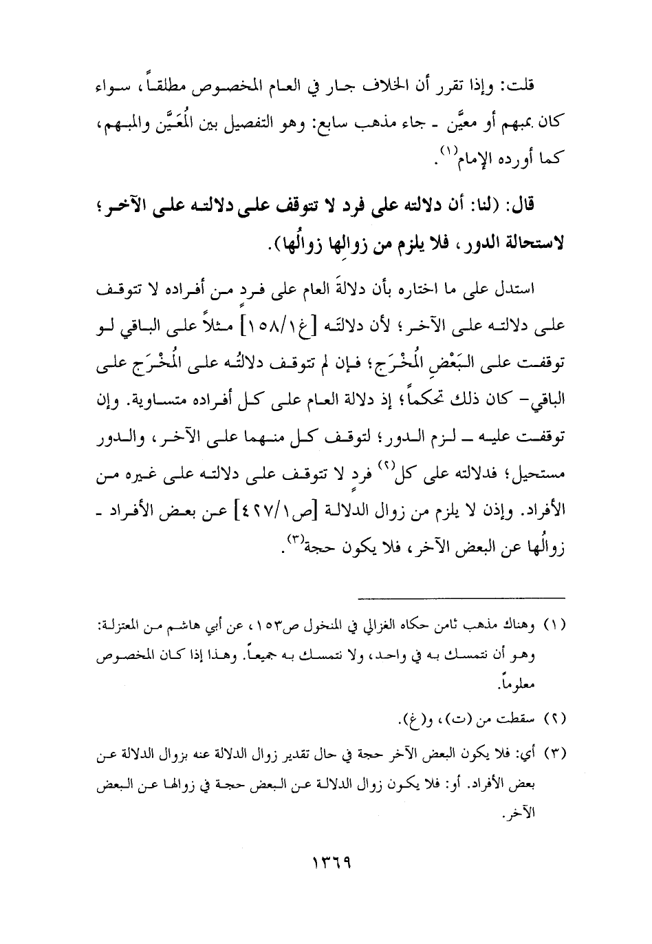 (¬٣) أي: فلا يكون البعض الآخر حجة في حال تقدير زوال الدلالة عنه بزوال الدلالة عن بعض الأفراد. أو: فلا يكون زوال الدلالة عن البعض حجة في زوالها عن البعض الآخر.