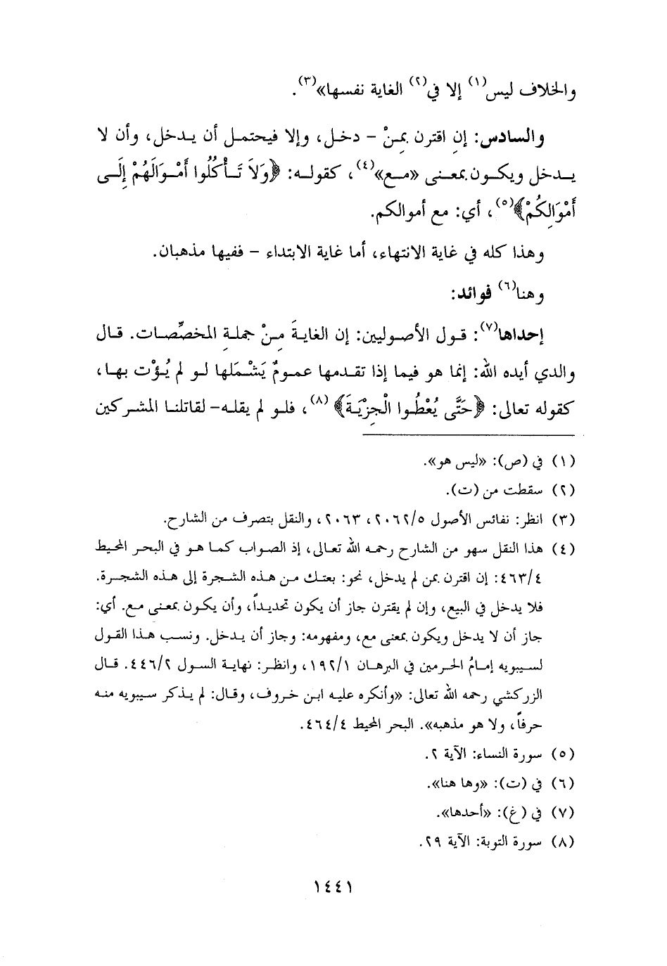 والسادس: إنِ اقترن بمِنْ - دخل، وإلا فيحتمل أن يدخل، وأن لا يدخل ويكون بمعنى "مع" (¬٤)، كقوله: {وَلَا تَأْكُلُوا أَمْوَالَهُمْ إِلَى أَمْوَالِكُمْ} (¬٥)، أي: مع أموالكم.