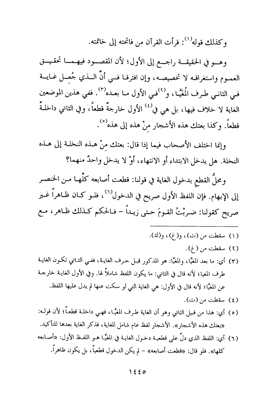 (¬٦) أي: اللفظ الذي دل على قطعية دخول الغاية في المغيَّا هو اللفظ الأول: "أصابعه كلها". فلو قال: "قطعت أصابعه" - لم يكن الدخول قطعيًا، بل يكون ظاهرًا.
