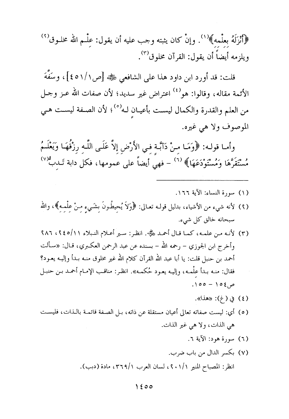 قلت: قد أورد ابن داود هذا على الشافعي - رضي الله عنه -، وسَفَّهَ الأئمة مقاله، وقالوا: هو (¬٤) اعتراض غير سديد؛ لأن صفات الله عز وجل من العلم والقدرة والكمال ليست بأعيانٍ له (¬٥)؛ لأن الصفة ليست هي الموصوف ولا هي غيره.