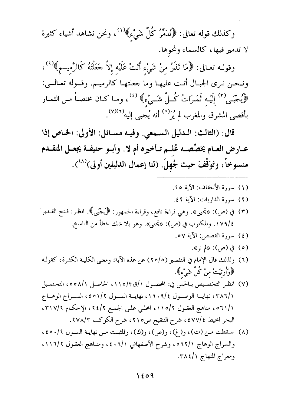 (¬٧) انظر التخصيص بالحس في: المحصول ١/ ق ٣/ ١١٥، الحاصل ١/ ٥٥٨، التحصيل ١/ ٣٨٦، نهاية الوصول ٤/ ١٦٠٩، نهاية السول ٢/ ٤٥١، السراج الوهاج ١/ ٥٦١، مناهج العقول ٢/ ١١٥، المحلي على الجمع ٢/ ٢٤، الإحكام ٢/ ٣١٧، البحر المحيط ٤/ ٤٧٧، شرح التنقيح ص ٢١٥، شرح الكوكب ٣/ ٢٧٨.