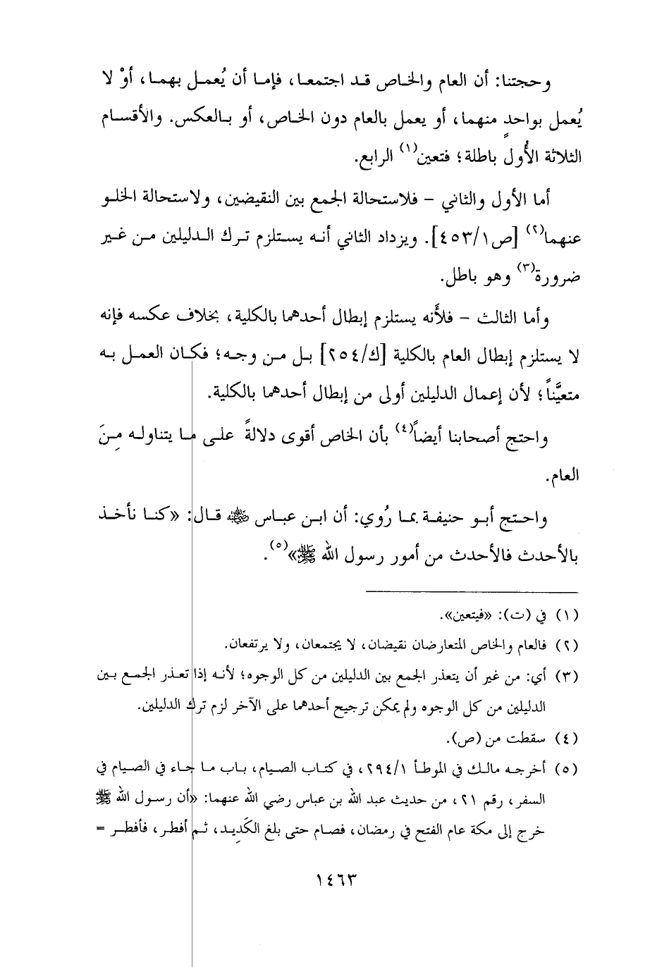 (¬٢) فالعام والخاص المتعارضان نقيضان، لا يجتمعان، ولا يرتفعان.