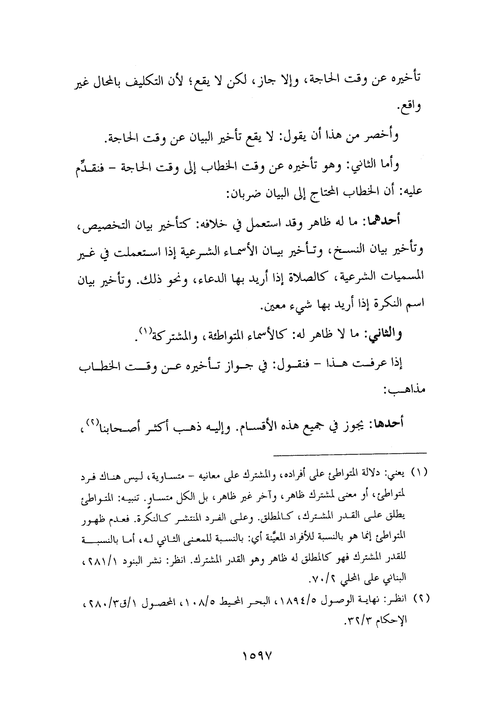 وأما الثاني: وهو تأخيره عن وقت الخطاب إلى وقت الحاجة - فنقدِّم عليه: أن الخطاب المحتاج إلى البيان ضربان: