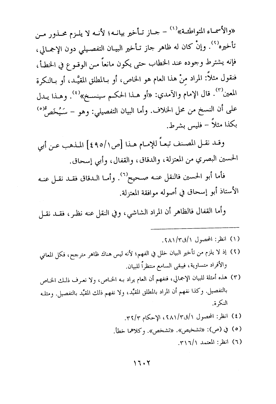 (¬٦) انظر: المعتمد ١/ ٣١٦.
