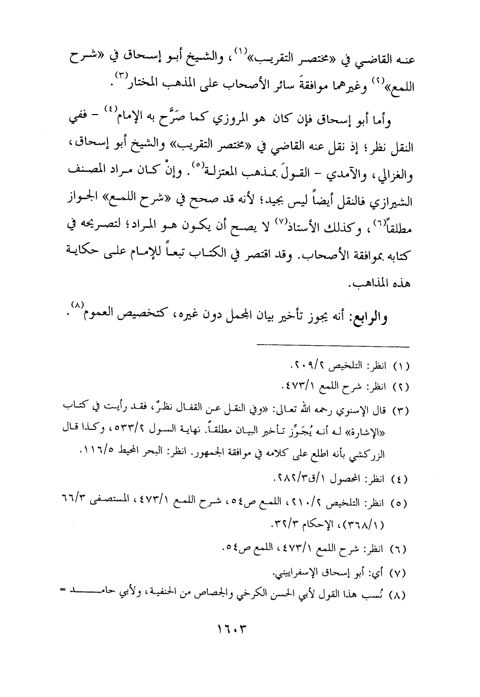 (¬٥) انظر: التلخيص ٢/ ٢١٠، اللمع ص ٥٤، شرح اللمع ١/ ٤٧٣، المستصفى ٣/ ٦٦ (١/ ٣٦٨)، الإحكام ٣/ ٣٢.