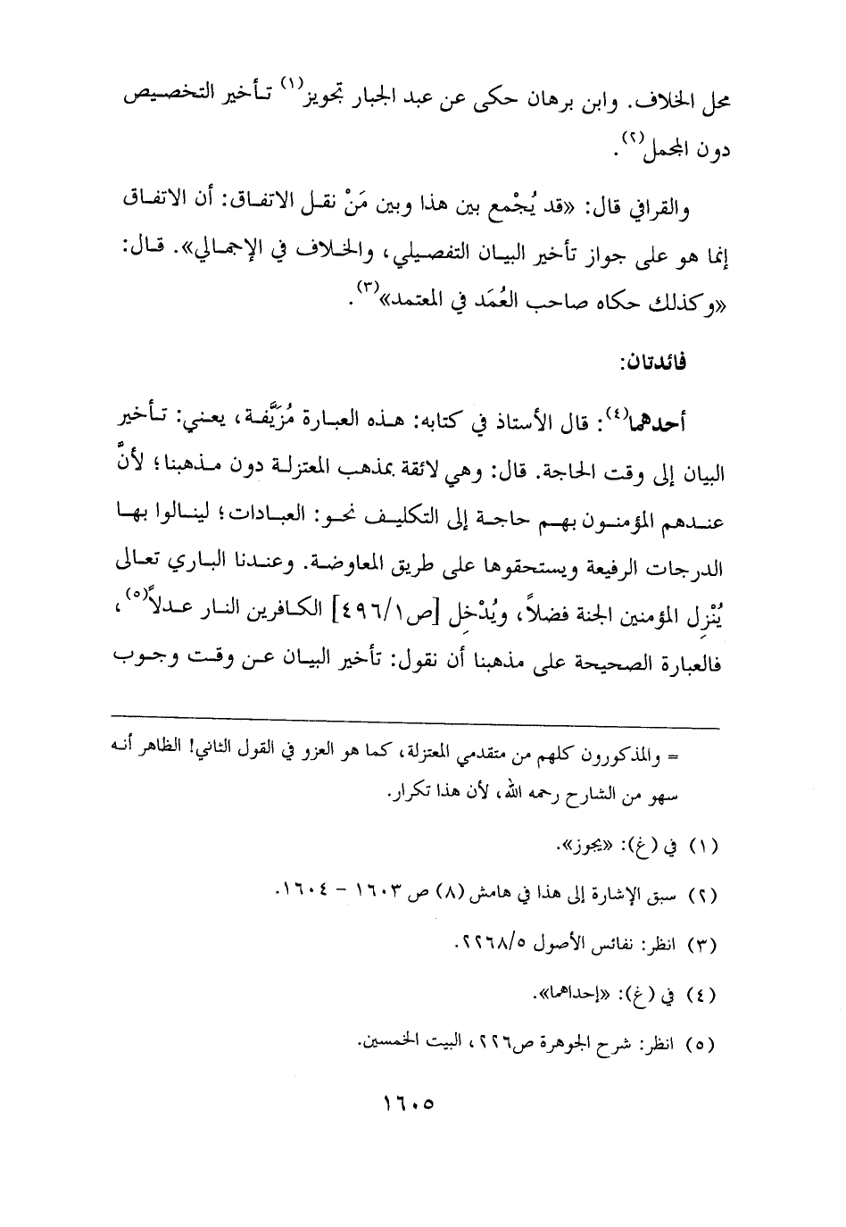 والقرافي قال: "قد يُجْمع بين هذا وبين مَنْ نقل الاتفاق: أن الاتفاق إنما هو على جواز تأخير البيان التفصيلي، والخلاف في الإجمالي". قال: "وكذلك حكاه صاحب العُمَد في المعتمد" (¬٣).