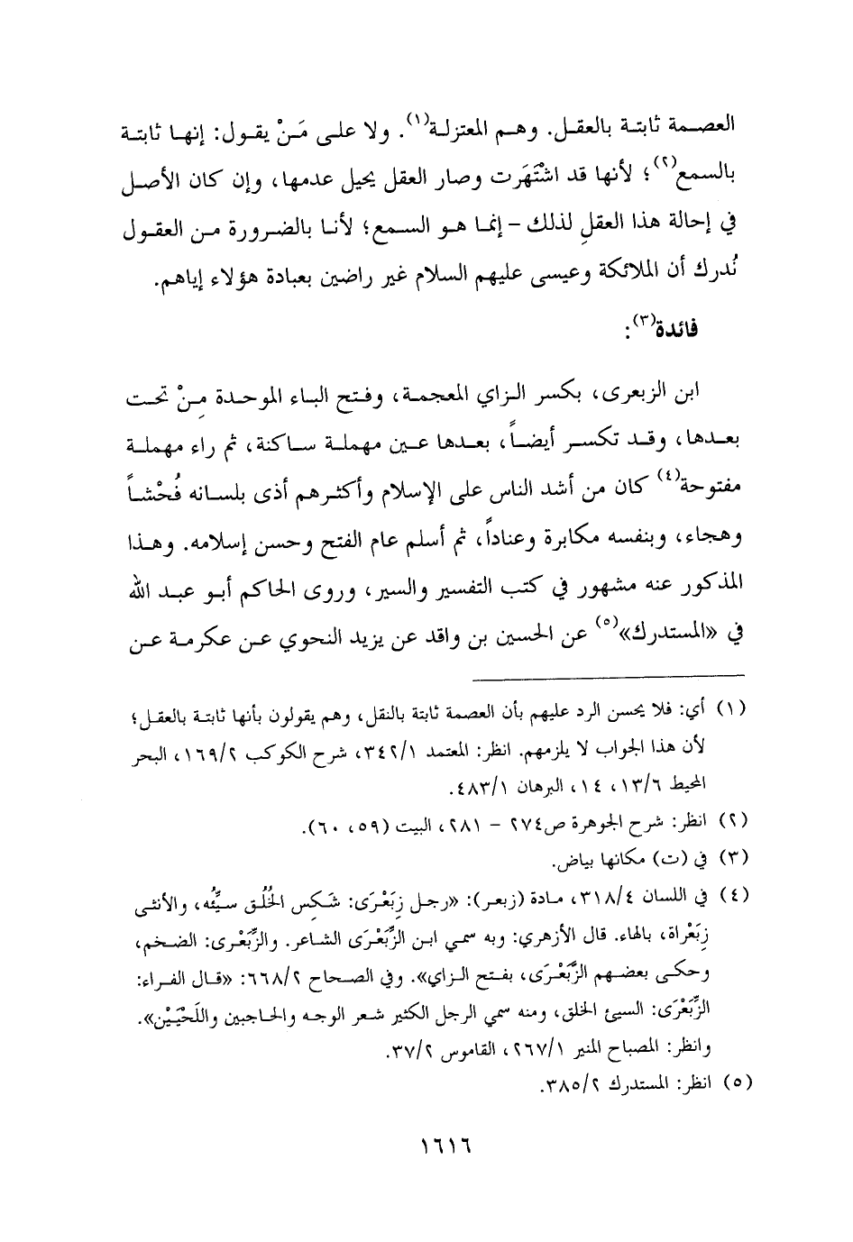 العصمة ثابتة بالعقل. وهم المعتزلة (¬١). ولا على مَنْ يقول: إنها ثابتة بالسمع (¬٢)؛ لأنها قد اشْتَهَرت وصار العقل يحيل عدمها، وإن كان الأصل في إحالة هذا العقلِ لذلك - إنما هو السمع؛ لأنا بالضرورة من العقول نُدرك أن الملائكة وعيسى عليهم السلام غير راضين بعبادة هؤلاء إياهم.