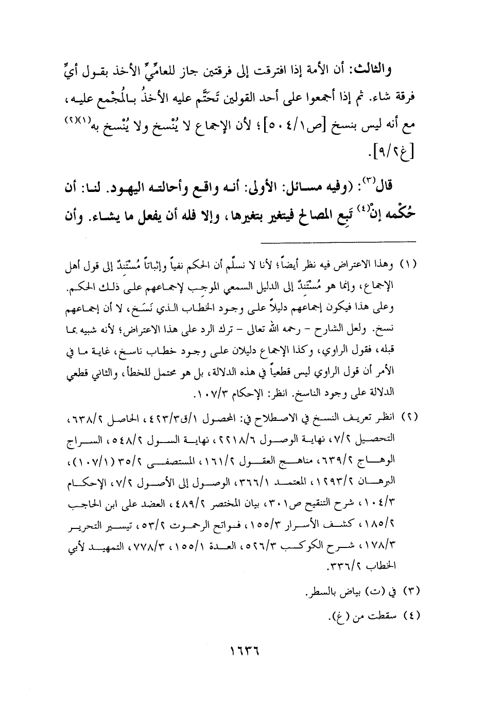 (¬٢) انظر تعريف النسخ في الاصطلاح في: المحصول ١/ ق ٣/ ٤٢٣، الحاصل ٢/ ٦٣٨، التحصيل ٢/ ٧، نهاية الوصول ٦/ ٢٢١٨، نهاية السول ٢/ ٥٤٨، السراج الوهاج ٢/ ٦٣٩، مناهج العقول ٢/ ١٦١، المستصفى ٢/ ٣٥ (١/ ١٠٧)، البرهان ٢/ ١٢٩٣، المعتمد ١/ ٣٦٦، الوصول إلى الأصول ٢/ ٧، الإحكام ٣/ ١٠٤، شرح التنقيح ص ٣٠١، بيان المختصر ٢/ ٤٨٩، العضد على ابن الحاجب ٢/ ١٨٥، كشف الأسرار ٣/ ١٥٥، فواتح الرحموت ٢/ ٥٣، تيسير التحرير ٣/ ١٧٨، شرح الكوكب ٣/ ٥٢٦، العدة ١/ ١٥٥، ٣/ ٧٧٨، التمهيد لأبي الخطاب ٢/ ٣٣٦.