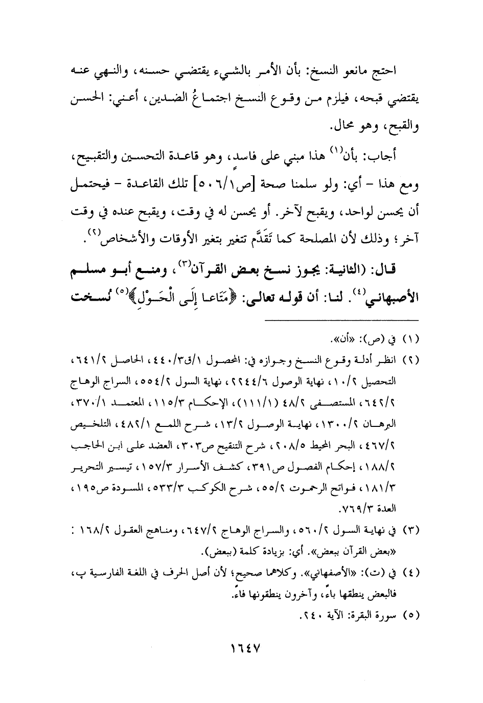 (¬٢) انظر أدلة وقوع النسخ وجوازه في: المحصول ١/ ق ٣/ ٤٤٠، الحاصل ٢/ ٦٤١، التحصيل ٢/ ١٠، نهاية الوصول ٦/ ٢٢٤٤، نهاية السول ٢/ ٥٥٤، السراج الوهاج ٢/ ٦٤٢، المستصفى ٩/ ٤٨ (١/ ١١١)، الإحكام ٣/ ١١٥، المعتمد ١/ ٣٧٠، البرهان ٢/ ١٣٠٠، نهاية الوصول ٢/ ١٣، شرح اللمع ١/ ٤٨٢، التلخيص ٢/ ٤٦٧، البحر المحيط ٥/ ٢٠٨، شرح التنقيح ص ٣٠٣، العضد على ابن الحاجب ٢/ ١٨٨، إحكام الفصول ص ٣٩١، كشف الأسرار ٣/ ١٥٧، تيسير التحرير ٣/ ١٨١، فواتح الرحموت ٢/ ٥٥، شرح الكوكب ٣/ ٥٣٣، المسودة ص ١٩٥، العدة ٣/ ٧٦٩.