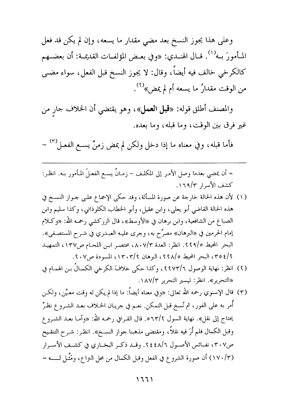 (¬٣) قال الإسنوي رحمه الله تعالى: "وفي معناه أيضًا: ما إذا لم يكن له وقت معيَّن، ولكن أُمر به على الفور، تم نُسخ قبل التمكن. نعم في جريان الخلاف بعد الشروع نظرٌ يحتاج إلى نقل". نهاية السول ٢/ ٥٦٣. قال القرافي رحمه الله: "وأما بعد الشروع وقبل الكمال فلم أَرَ فيه نقلًا، ومقتضى مذهبنا جواز النسخ". انظر: شرح التنقيح ص ٣٠٧، نفائس الأصول ٦/ ٢٤٤٨. وقد ذكر البخاري في كشف الأسرار (٣/ ١٧٠) أن صورة الشروع في الفعل وقبل الكمال من محل النزاع، ومَثَّل له =