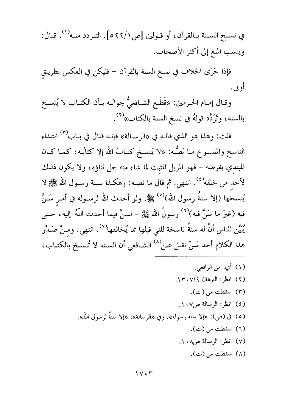 (¬٧) انظر: الرسالة ص ١٠٨.