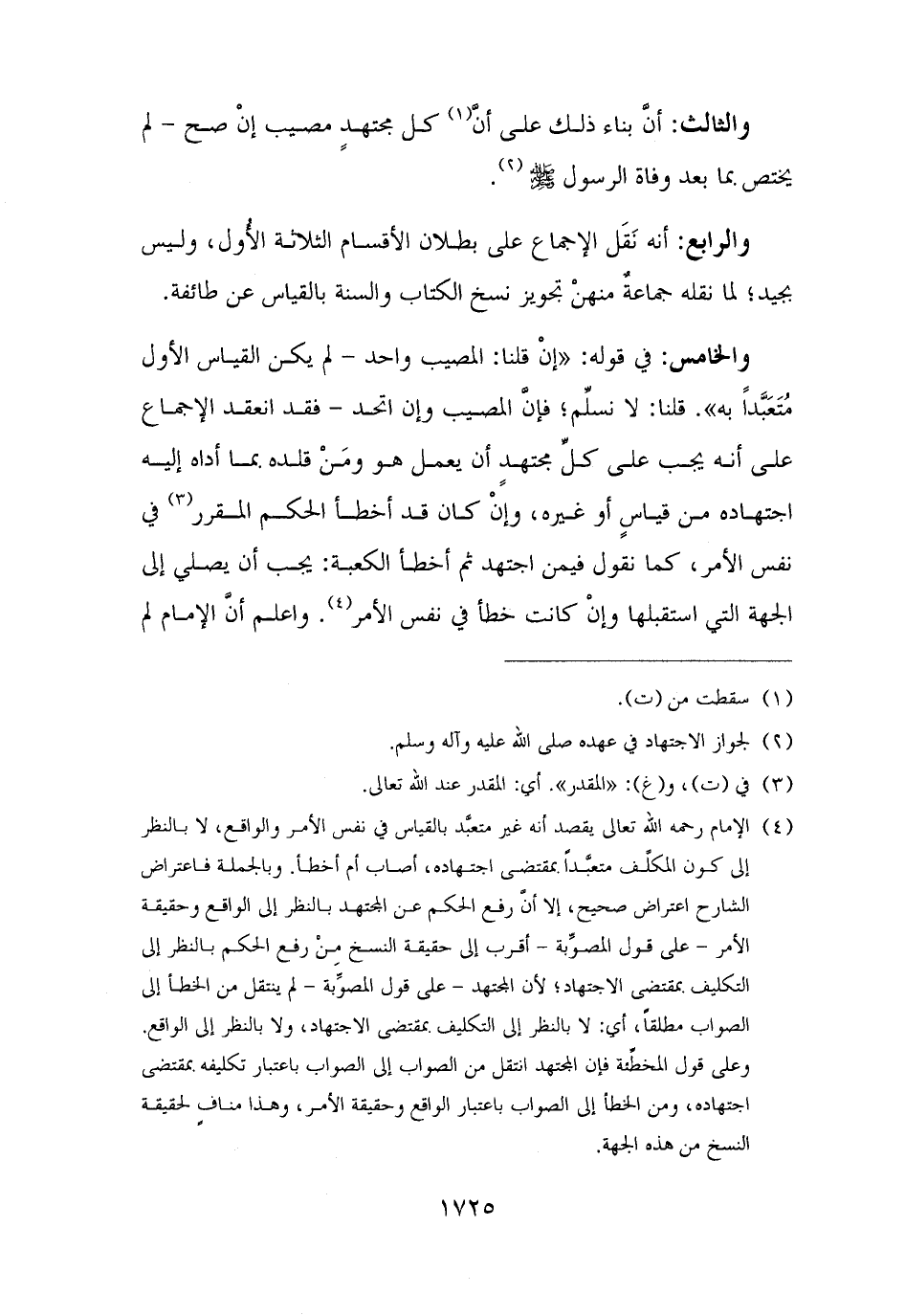 والرابع: أنه نَقَل الإجماع على بطلان الأقسام الثلاثة الأُول، وليس بجيد؛ لما نقله جماعةٌ منهنْ تجويز نسخ الكتاب والسنة بالقياس عن طائفة.