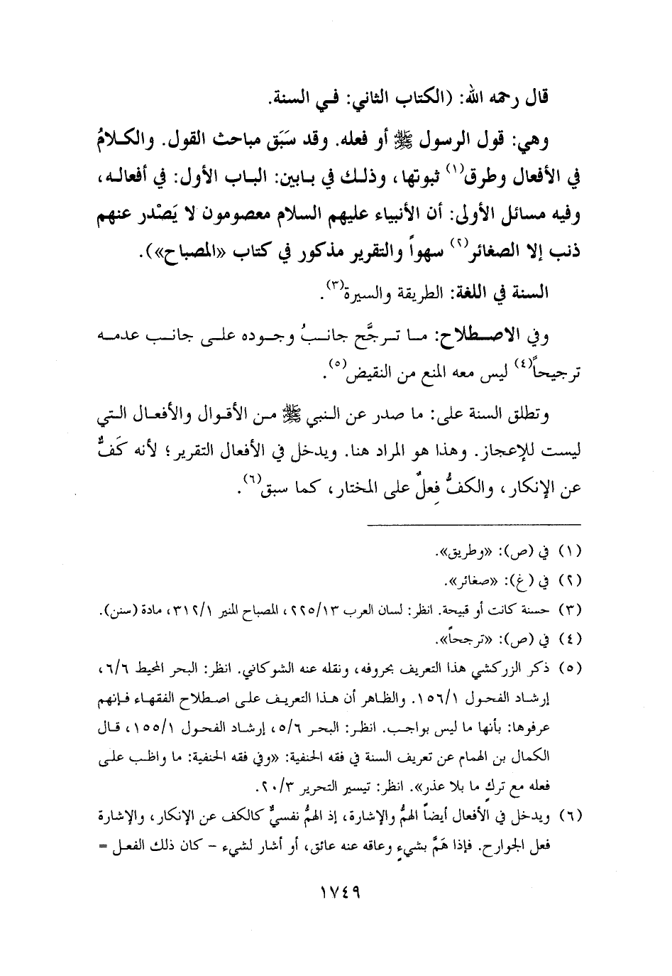 (¬٥) ذكر الزركشي هذا التعريف بحروفه، ونقله عنه الشوكاني. انظر: البحر المحيط ٦/ ٦، إرشاد الفحول ١/ ١٥٦. والظاهر أن هذا التعريف على اصطلاح الفقهاء فإنهم عرفوها: بأنها ما ليس بواجب. انظر: البحر ٦/ ٥، إرشاد الفحول ١/ ١٥٥، قال الكمال بن الهمام عن تعريف السنة في فقه الحنفية: "وفي فقه الحنفية: ما واظب على فعله مع تركٍ ما بلا عذر". انظر: تيسير التحرير ٣/ ٢٠.