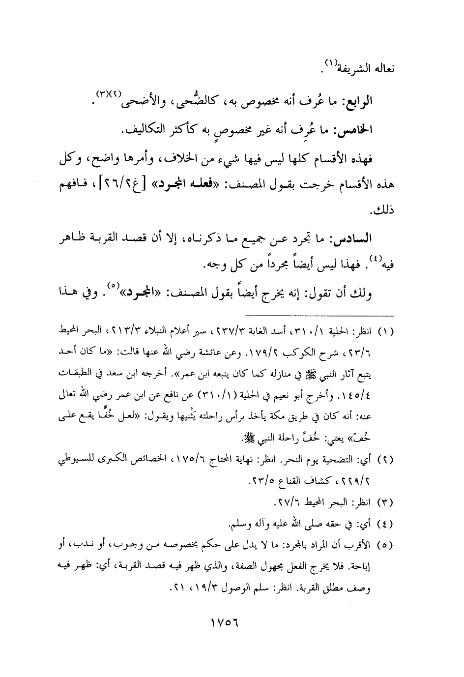 (¬١) انظر: الحلية ١/ ٣١٠، أسد الغابة ٣/ ٢٣٧، سير أعلام النبلاء ٣/ ٢١٣، البحر المحيط ٦/ ٢٣، شرح الكوكب ٢/ ١٧٩. وعن عائشة رضي الله عنها قالت: "ما كان أحد يتبع آثار النبي - صلى الله عليه وسلم - في منازله كما كان يتبعه ابن عمر". أخرجه ابن سعد في الطبقات ٤/ ١٤٥. وأخرج أبو نعيم في الحلية (١/ ٣١٠) عن نافع عن ابن عمر رضي الله تعالى عنه: أنه كان في طريق مكة يأخذ برأس راحلته يَثْنيها ويقول: "لعل خُفًّا يقع على خُفّ" يعني: خُفَّ راحلة النبي - صلى الله عليه وسلم -.