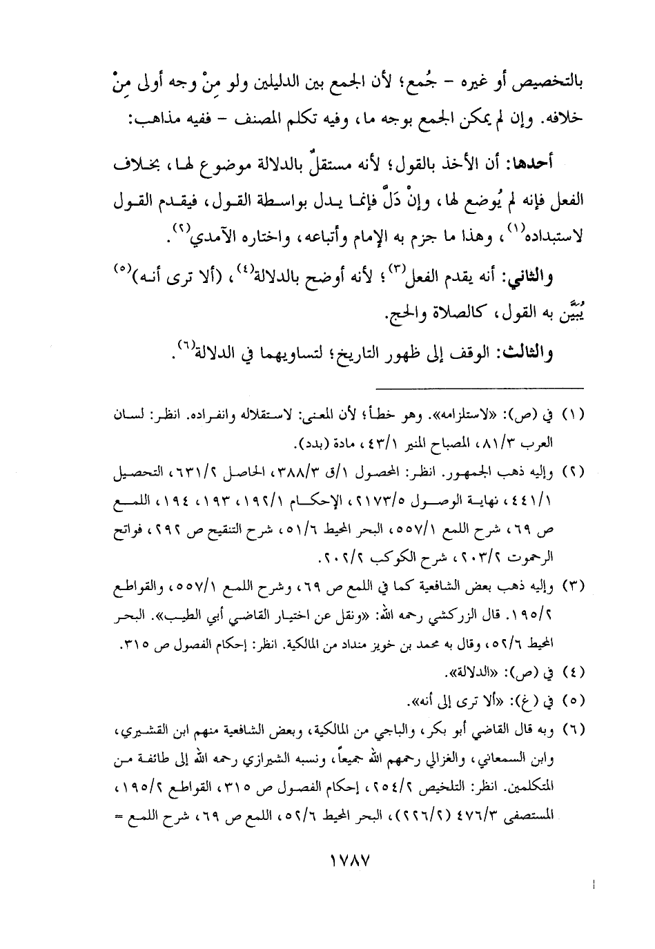 (¬٢) وإليه ذهب الجمهور. انظر: المحصول ١/ ق ٣/ ٣٨٨، الحاصل ٢/ ٦٣١، التحصيل ١/ ٤٤١، نهاية الوصول ٥/ ٢١٧٣، الإحكام ١/ ١٩٢، ١٩٣، ١٩٤، اللمع ص ٦٩، شرح اللمع ١/ ٥٥٧، البحر المحيط ٦/ ٥١، شرح التنقيح ص ٢٩٢، فواتح الرحموت ٢/ ٢٠٣، شرح الكوكب ٢/ ٢٠٢.