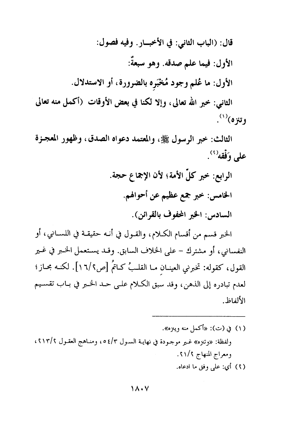 قال: (الباب الثاني: في الأخبار. وفيه فصول:
