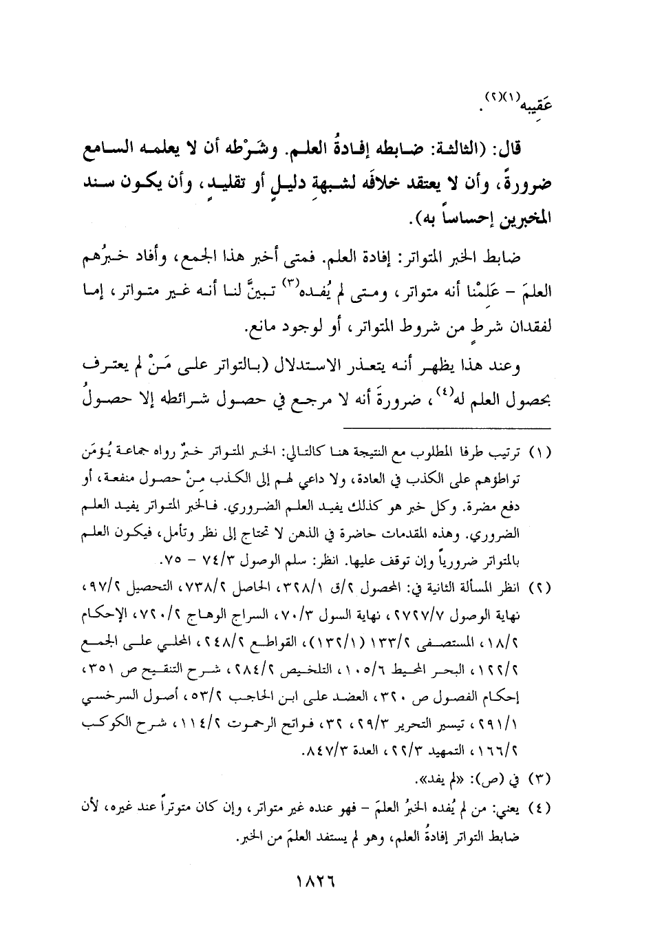 (¬٤) يعني: من لم يُفده الخبرُ العلمَ - فهو عنده غير متواتر، وإن كان متوترًا عند غيره، لأن ضابط التواتر إفادةُ العلم، وهو لم يستفد العلمَ من الخبر.