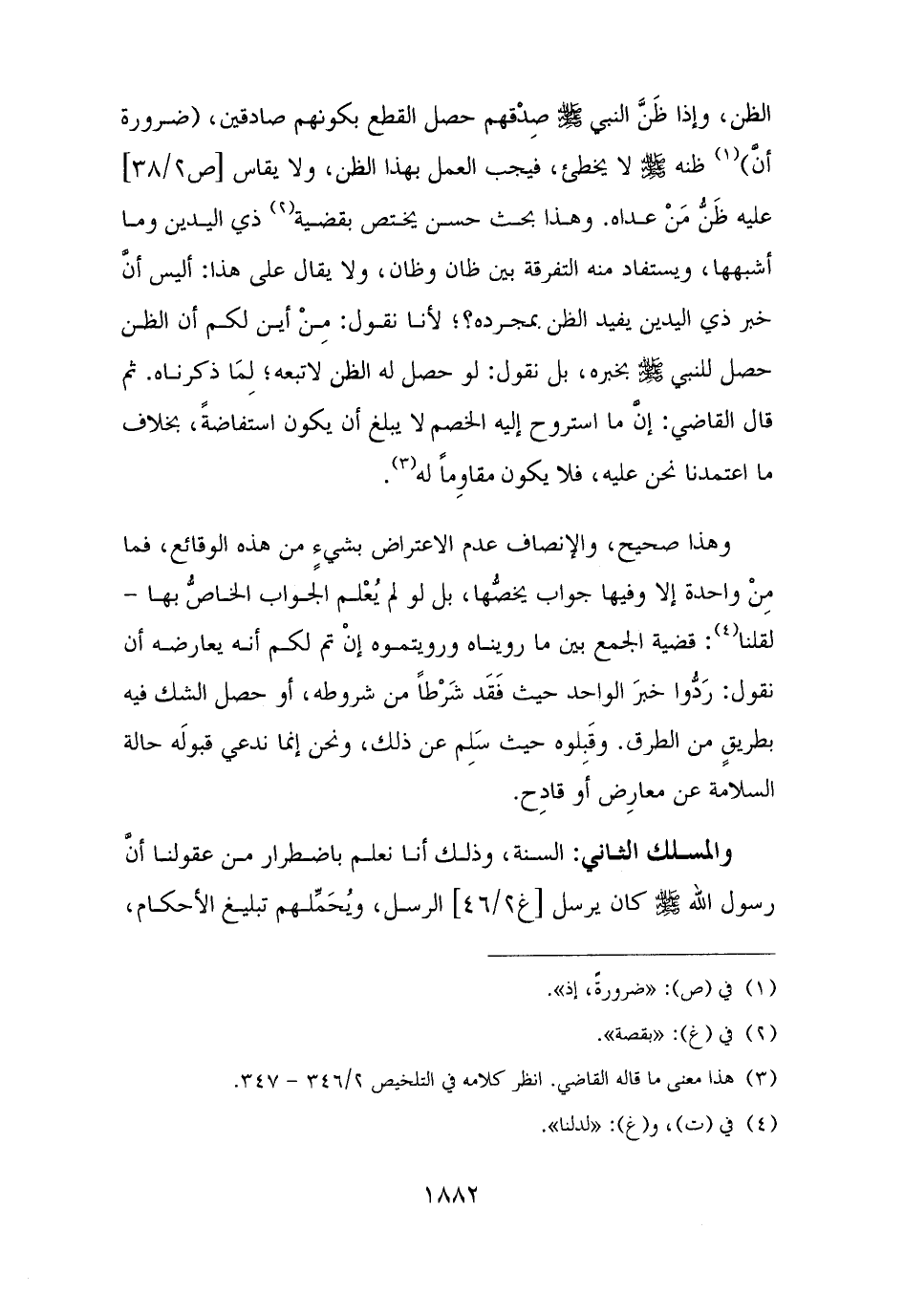 والمسلك الثاني: السنة، وذلك أنا نعلم باضطرار من عقولنا أنَّ رسول الله - صلى الله عليه وسلم - كان يرسل الرسل، ويُحَمِّلهم تبليغ الأحكام،