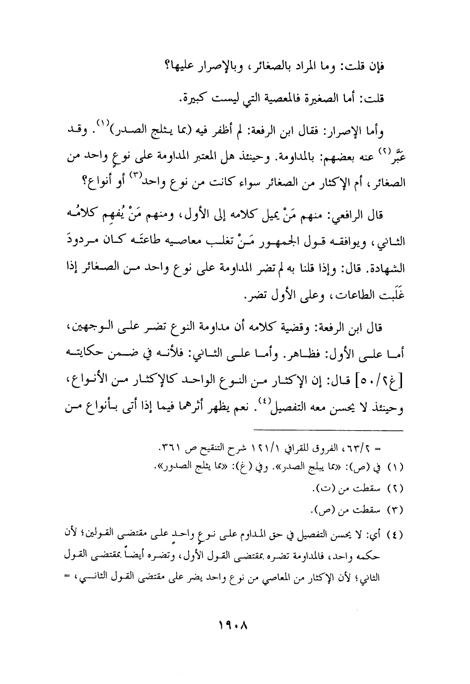 (¬٤) أي: لا يحسن التفصيل في حق المداوم على نوع واحدٍ على مقتضى القولين؛ لأن حكمه واحد، فالمداومة تضره بمقتضى القول الأول، وتضره أيضًا بمقتضى القول الثاني؛ لأن الإكثار من المعاصي من نوع واحد يضر على مقتضى القول الثاني، =