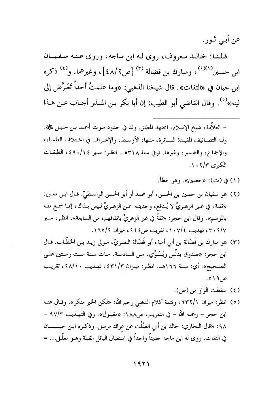قلنا: خالد معروف، روى له ابن ماجه، وروى عنه سفيان بن حسين (¬١) (¬٢)، ومبارك بن فضالة (¬٣)، وغيرهما. و (¬٤) ذكره ابن حبان في "الثقات". قال شيخنا الذهبي: "وما علمتُ أحدًا تَعَرَّض إلى لينه" (¬٥). وقال القاضي أبو الطيب: إن أبا بكر بن المنذر أجاب عن هذا