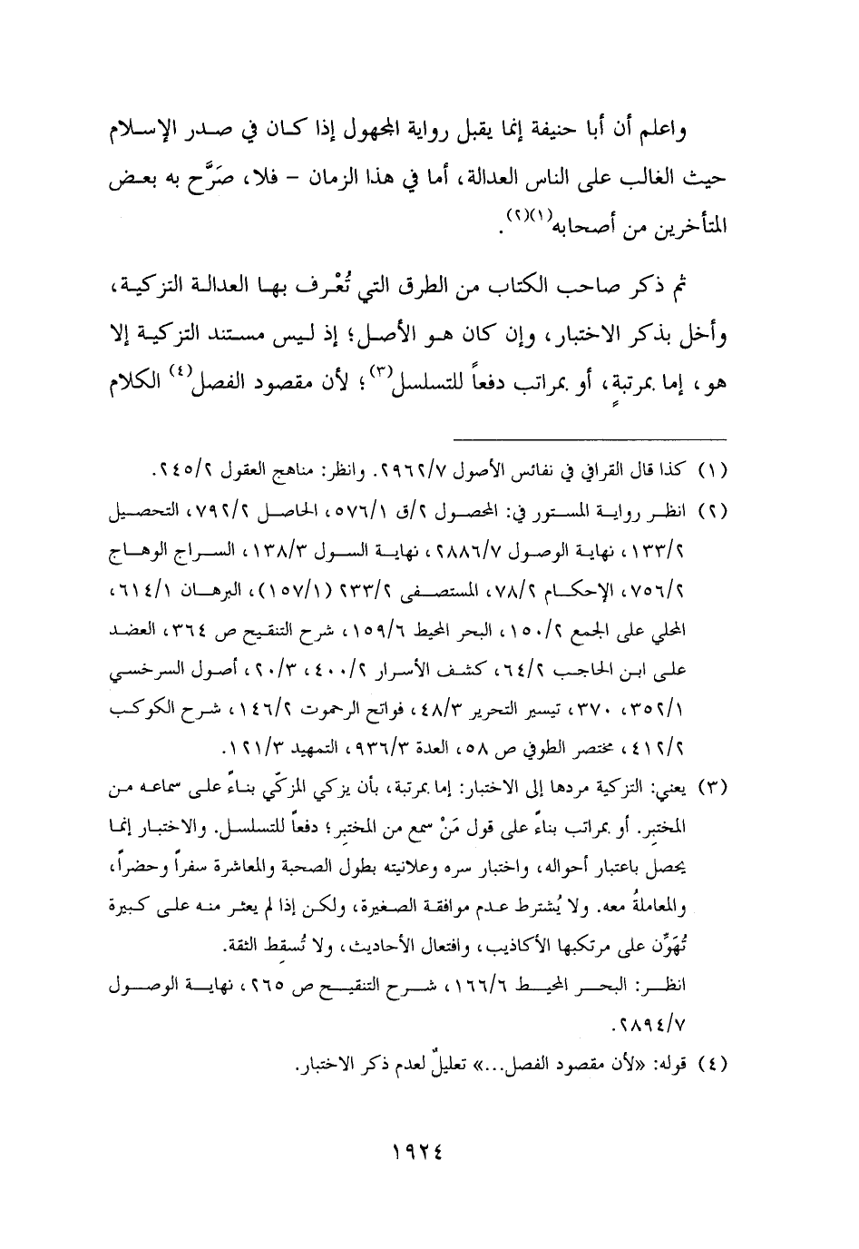 ثم ذكر صاحب الكتاب من الطرق التي تُعْرف بها العدالة التزكية، وأخل بذكر الاختبار، وإن كان هو الأصل؛ إذ ليس مستند التزكية إلا هو، إما بمرتبةٍ، أو بمراتب دفعًا للتسلسل (¬٣)؛ لأن مقصود الفصل (¬٤) الكلام