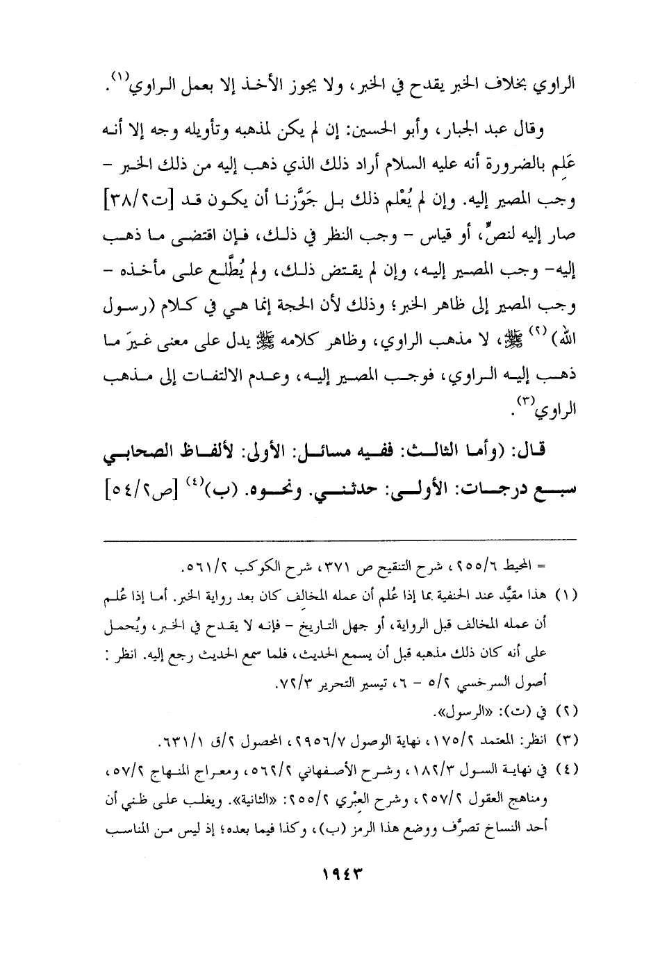 (¬٣) انظر: المعتمد ٢/ ١٧٥، نهاية الوصول ٧/ ٢٩٥٦، المحصول ٢/ ق ١/ ٦٣١.