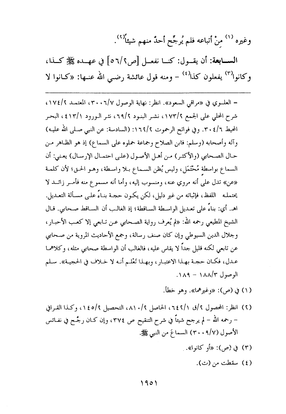 (¬٢) انظر: المحصول ٢/ ق ١/ ٦٤٢، الحاصل ٢/ ٨١٠، التحصيل ٢/ ١٤٥، وكذا القرافي - رحمه الله - لم يرجح شيئًا في شرح التنقيح ص ٣٧٤، وإن كان رجَّح في نفائس الأصول (٧/ ٣٠٠٩) السماعَ من النبي - صلى الله عليه وسلم -.