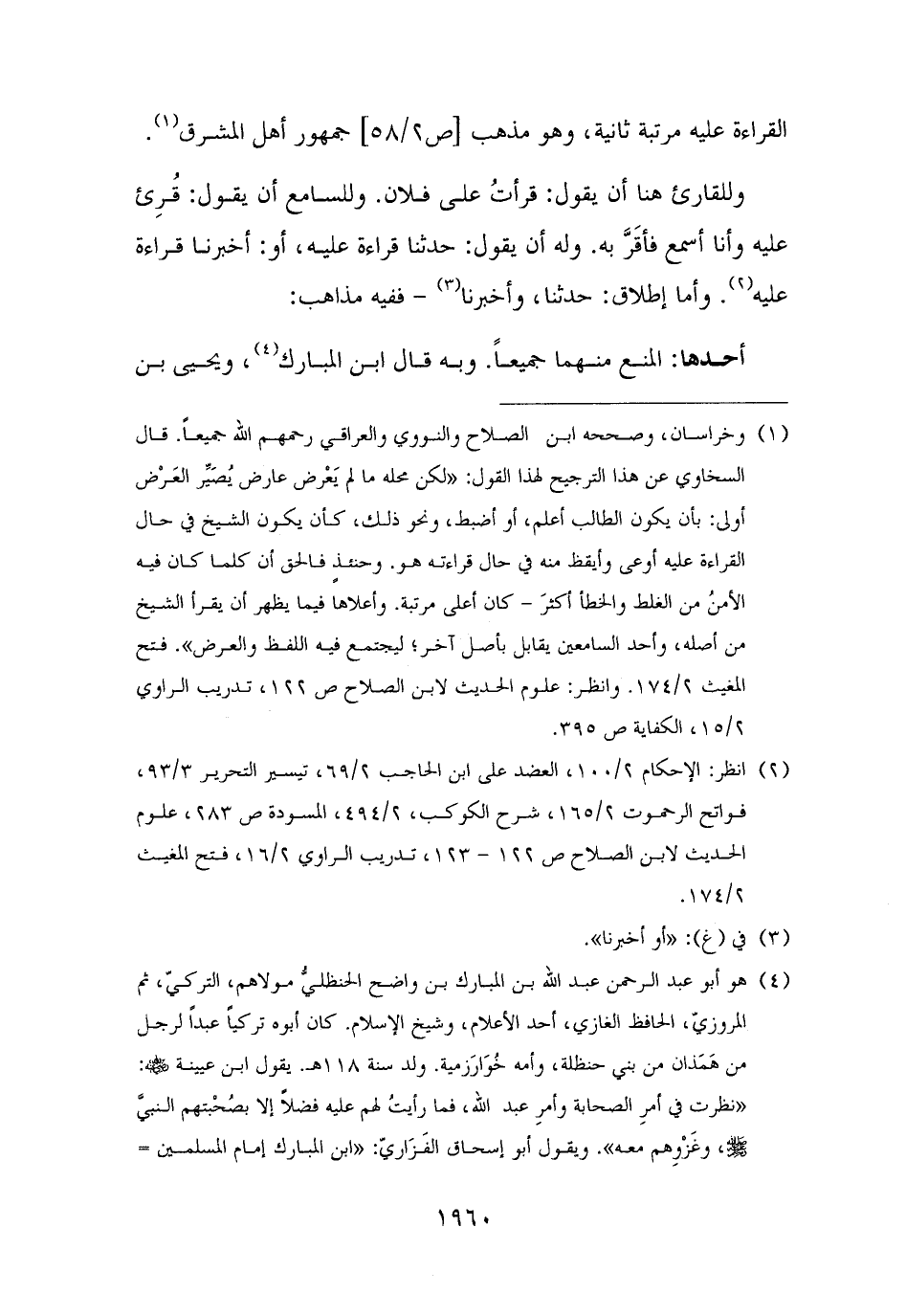 (¬٢) انظر: الإحكام ٢/ ١٠٠، العضد على ابن الحاجب ٢/ ٦٩، تيسير التحرير ٣/ ٩٣، فواتح الرحموت ٢/ ١٦٥، شرح الكوكب، ٢/ ٤٩٤، المسودة ص ٢٨٣، علوم الحديث لابن الصلاح ص ١٢٢ - ١٢٣، تدريب الراوي ٢/ ١٦، فتح المغيث ٢/ ١٧٤.