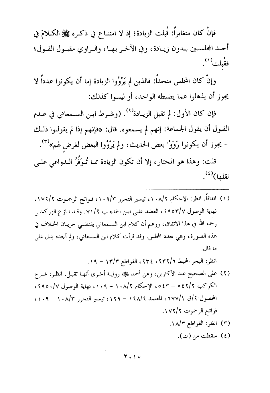 فإن كان الأول: لم تقبل الزيادة (¬٢). (وشرط ابن السمعاني في عدم القبول أن يقول الجماعة: إنهم لم يسمعوه. قال: "فإنهم إذا لم يقولوا ذلك - يجوز أن يكونوا رَوَوْا بعض الحديث، ولم يَرْوُوا البعض لغرضٍ لهم" (¬٣).