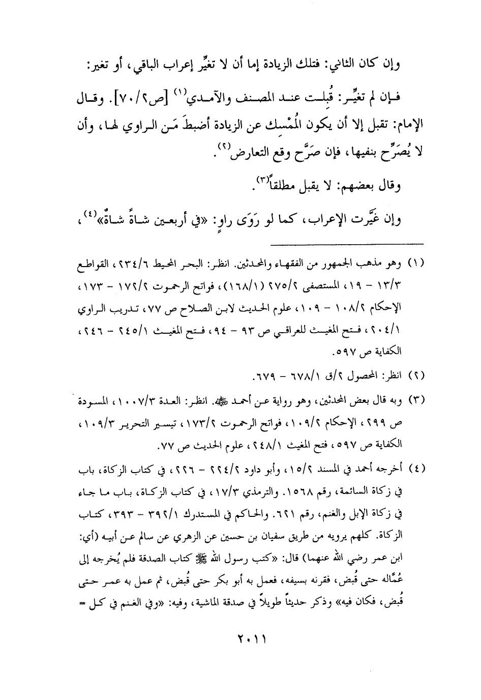 (¬٣) وبه قال بعض المحدثين، وهو رواية عن أحمد - رضي الله عنه -. انظر: العدة ٣/ ١٠٠٧، المسودة ص ٢٩٩، الإحكام ٢/ ١٠٩، فواتح الرحموت ٢/ ١٧٣، تيسير التحرير ٣/ ١٠٩، الكفاية ص ٥٩٧، فتح المغيث ١/ ٢٤٨، علوم الحديث ص ٧٧.