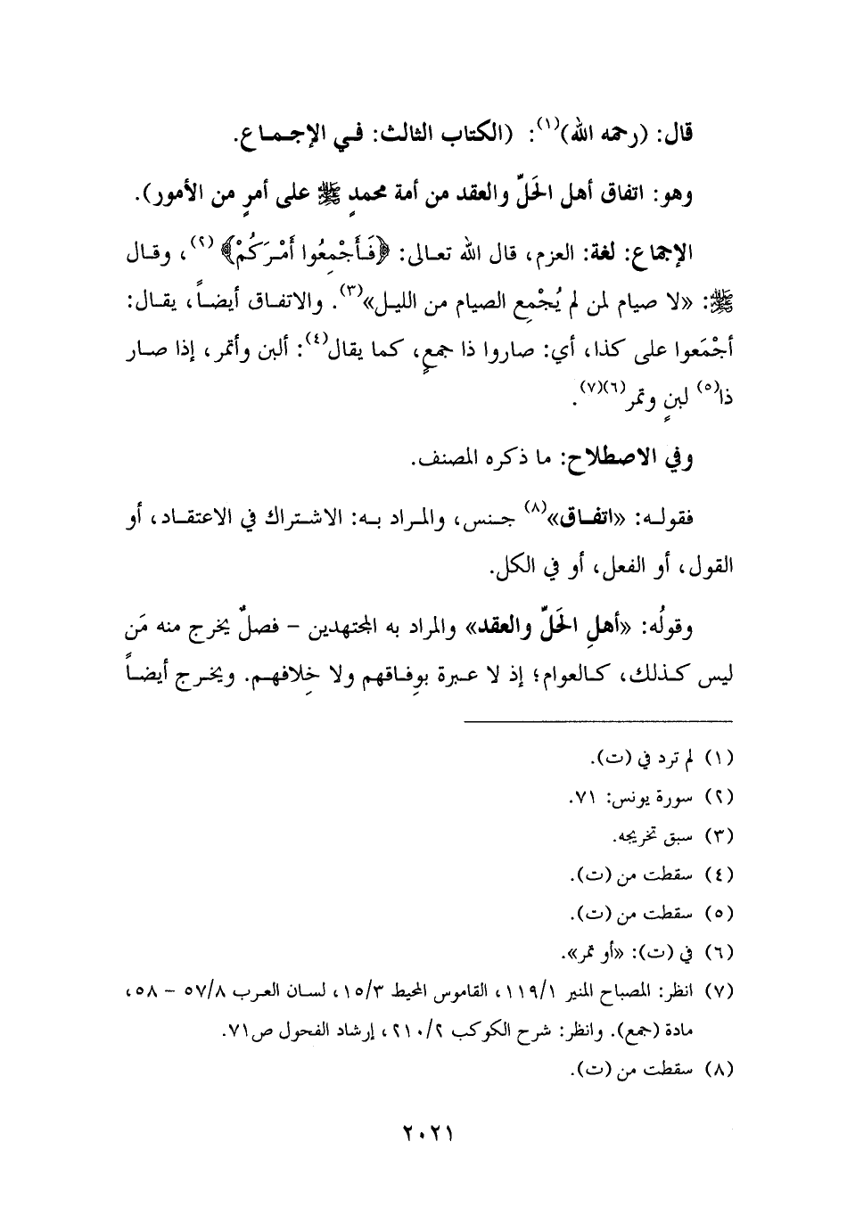 (¬٧) انظر: المصباح المنير ١/ ١١٩، القاموس المحيط ٣/ ١٥، لسان العرب ٨/ ٥٧ - ٥٨، مادة (جمع). وانظر: شرح الكوكب ٢/ ٢١٠، إرشاد الفحول ص ٧١.