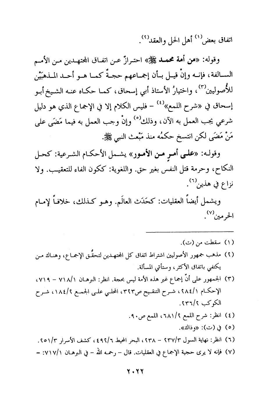 (¬٢) مذهب جمهور الأصوليين اشتراط اتفاق كل المجتهدين لتحقُّق الإجماع، وهناك من يكتفي باتفاق الأكثر، وستأتي المسألة.