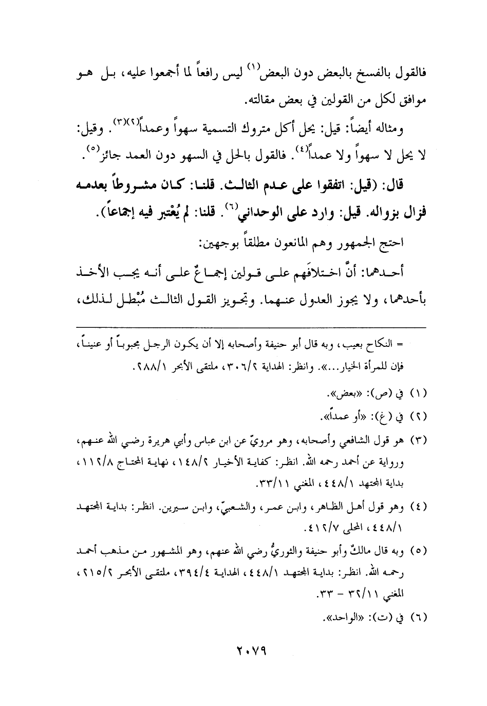 (¬٥) وبه قال مالكٌ وأبو حنيفة والثوريُّ رضي الله عنهم، وهو المشهور من مذهب أحمد رحمه الله. انظر: بداية المجتهد ١/ ٤٤٨، الهداية ٤/ ٣٩٤، ملتقى الأبحر ٢/ ٢١٥، المغني ١١/ ٣٢ - ٣٣.